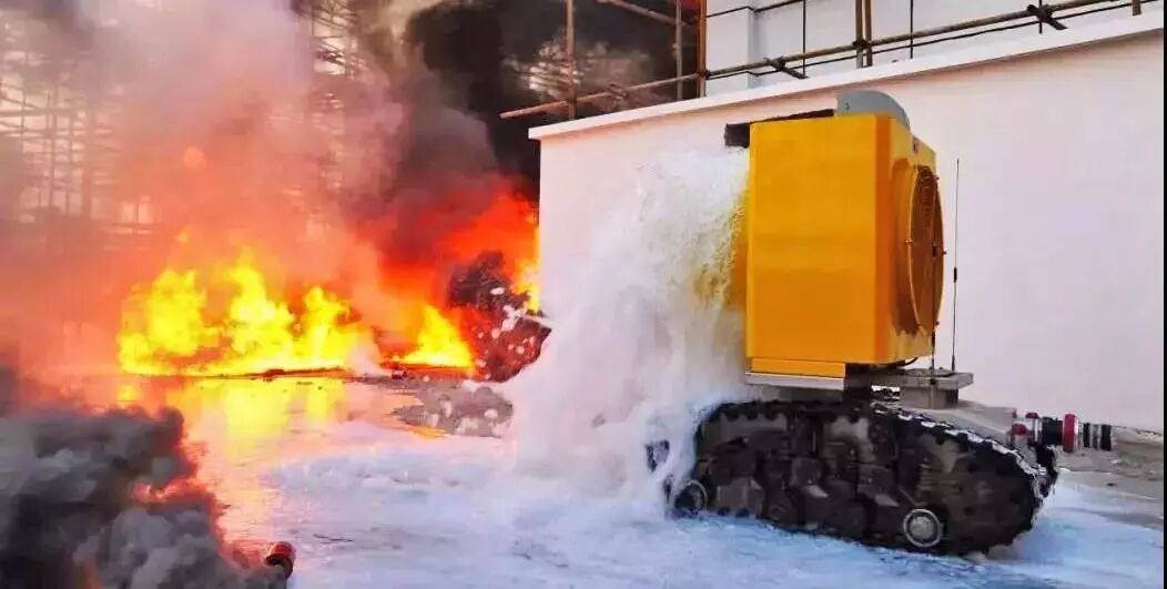 ▲此次演练有多款机器人,如用于火灾扑救的防爆消防灭火机器人;用于侦察的防爆消防侦察机器人;具有排烟、灭火、送风、降温、除尘、环境侦测、图像采集于一体的消防排烟灭火机器人;用于石化、燃气、储罐等场所的防爆消防高倍数沫灭火侦察机器人等。